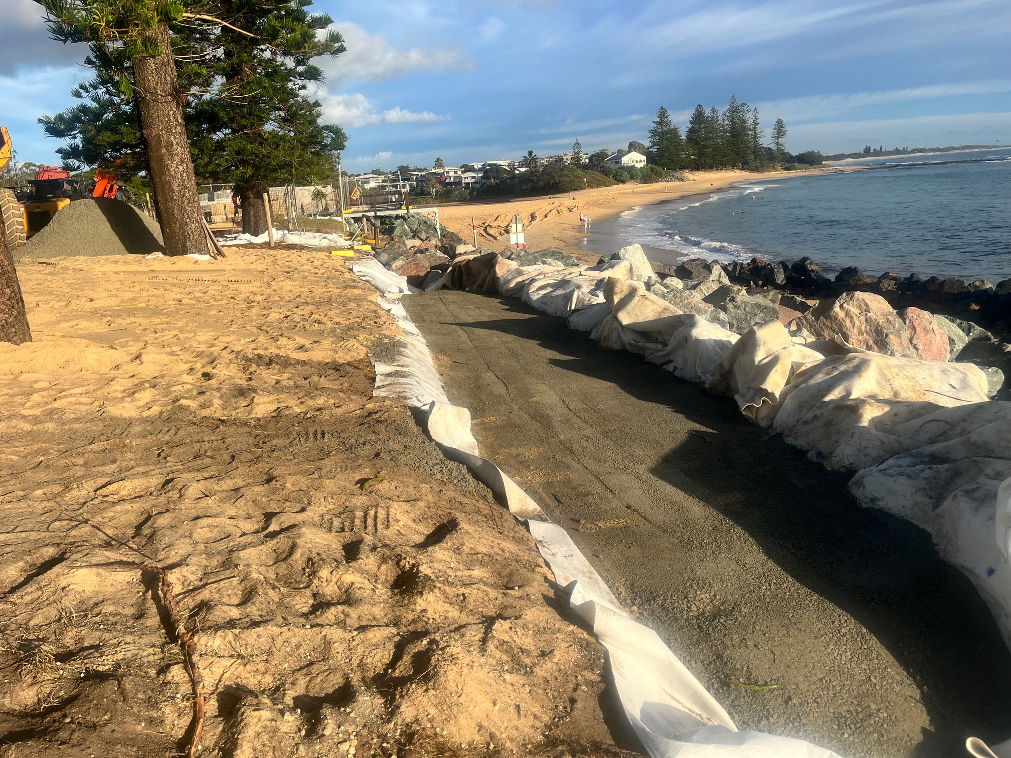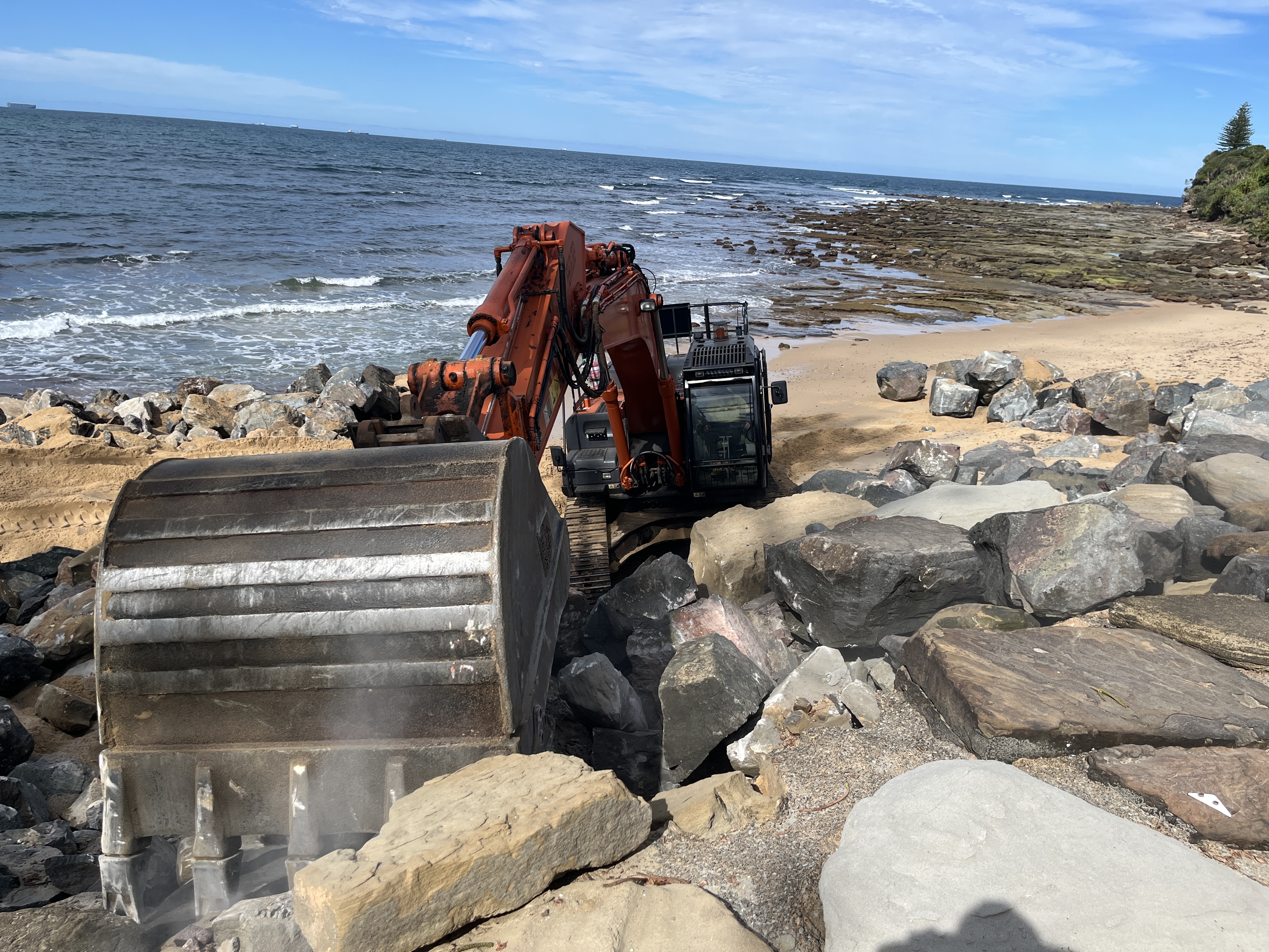 Because we designed the seawall around them, we must work from the beach, not behind the wall. This creates significant challenges but protects the character of Moffat Beach.